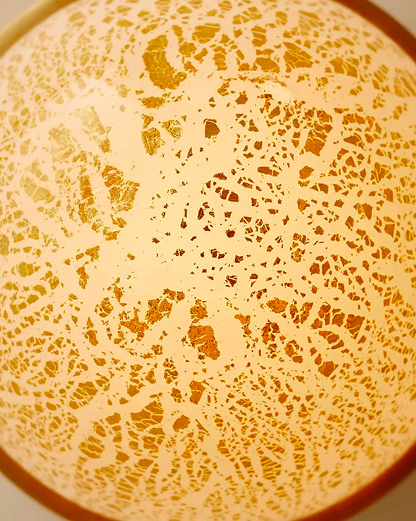 Description A small 24K gold foiled blown glass ball in a simple brass or steel dish. Designed by Blue Green Works