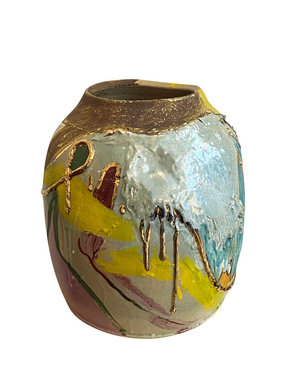 Description Metallic Cylinder stool #2 by Reinaldo Sanguino available at the showroom, as shown. One of a kind piece.