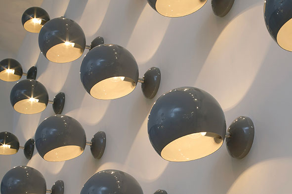 L'applique Boi illumine les designs sobres. Cette lampe est dotée de deux ouvertures et pivote pour orienter la lumière. Installez-en plusieurs pour projeter des ombres ondulées sur les murs environnants.