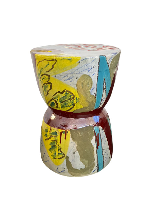 Description Tabouret Metallic Hour Glass stool de Reinaldo Sanguino, disponible au showroom. Pièce unique