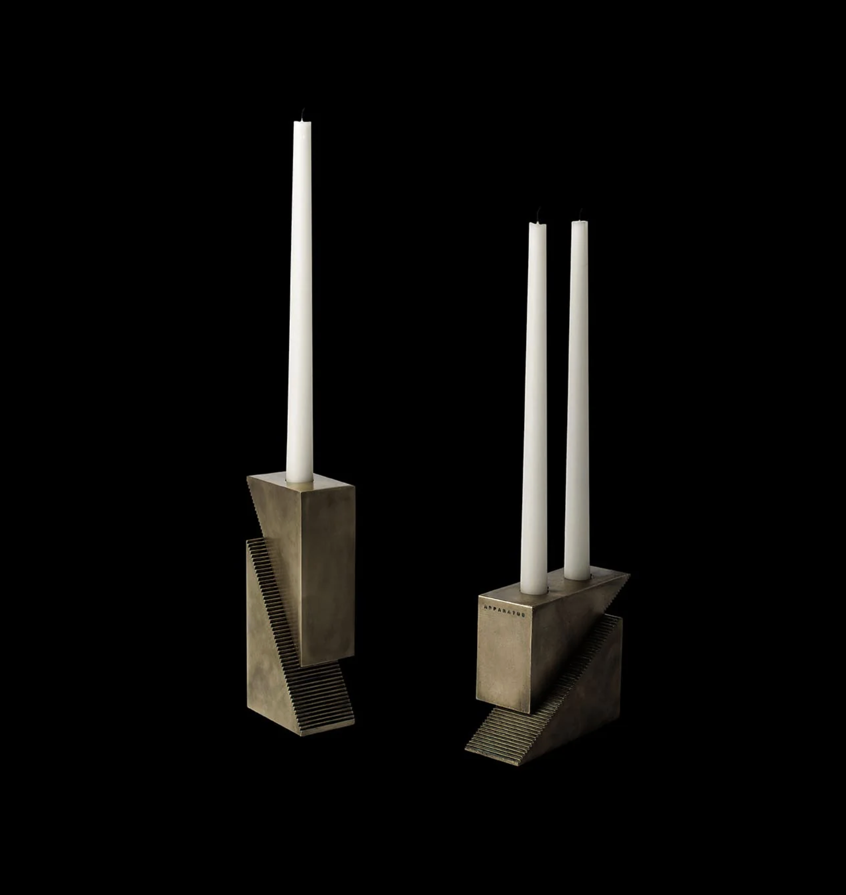 L’acte IV du studio Apparatus remodèle une fantaisie des années 1960. Le lampadaire Signal X Floor Lamp présente un abat-jour en verre pressé et une armature en laiton. Il évoque les technologies de communication et les équipements d'éclairage de scène.